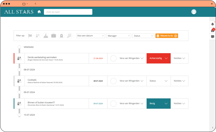 Geef jouw gasten het gevoel dat ze er écht om doen met ongekende reactietijden, foutloze- én verrassend persoonlijke communicatie. Werk samen met jouw gast binnen één bron van informatie voor aanvragen en wijzigingen. En geef, met behulp van herinneringen, een persoonlijke noot aan contactmomenten.