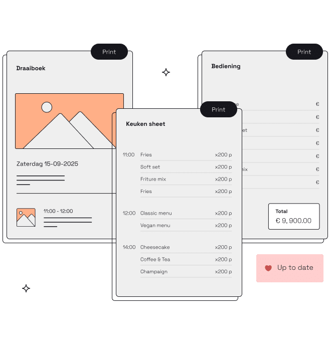 Een online draaiboek voor uw gast, maar ook intelligente PDF’s voor intern gebruik. Compleet, maar beknopt. Zo komen events pas echt tot leven.