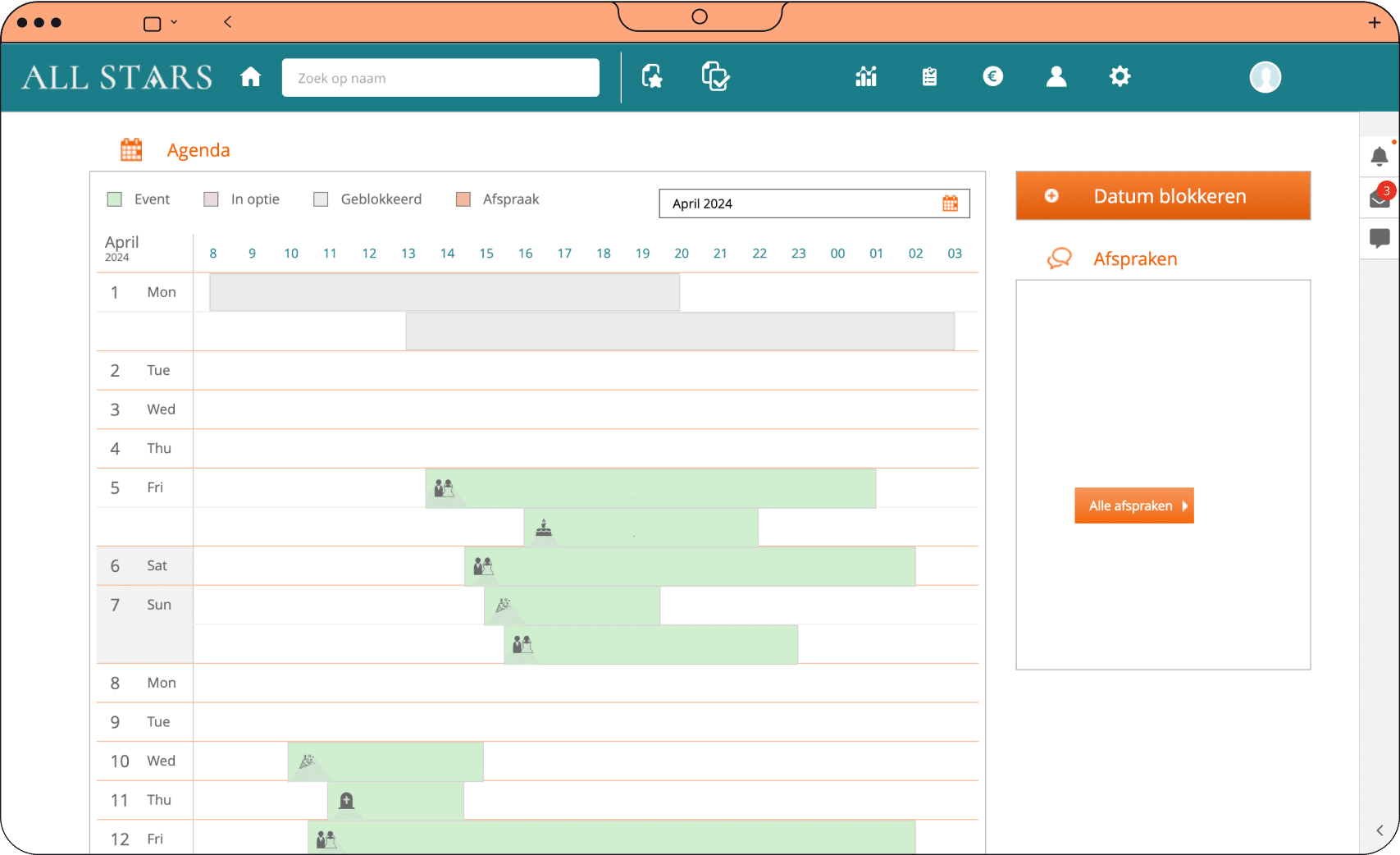 Meerdere locaties in 1 agenda? Geen enkel probleem! Met onze geavanceerde koppeling via google of outlook is meerdere locaties in 1 agenda en overzicht een feit. Bepaal in 1 overzicht welke locatie nog beschikbaarheid heeft en plan!